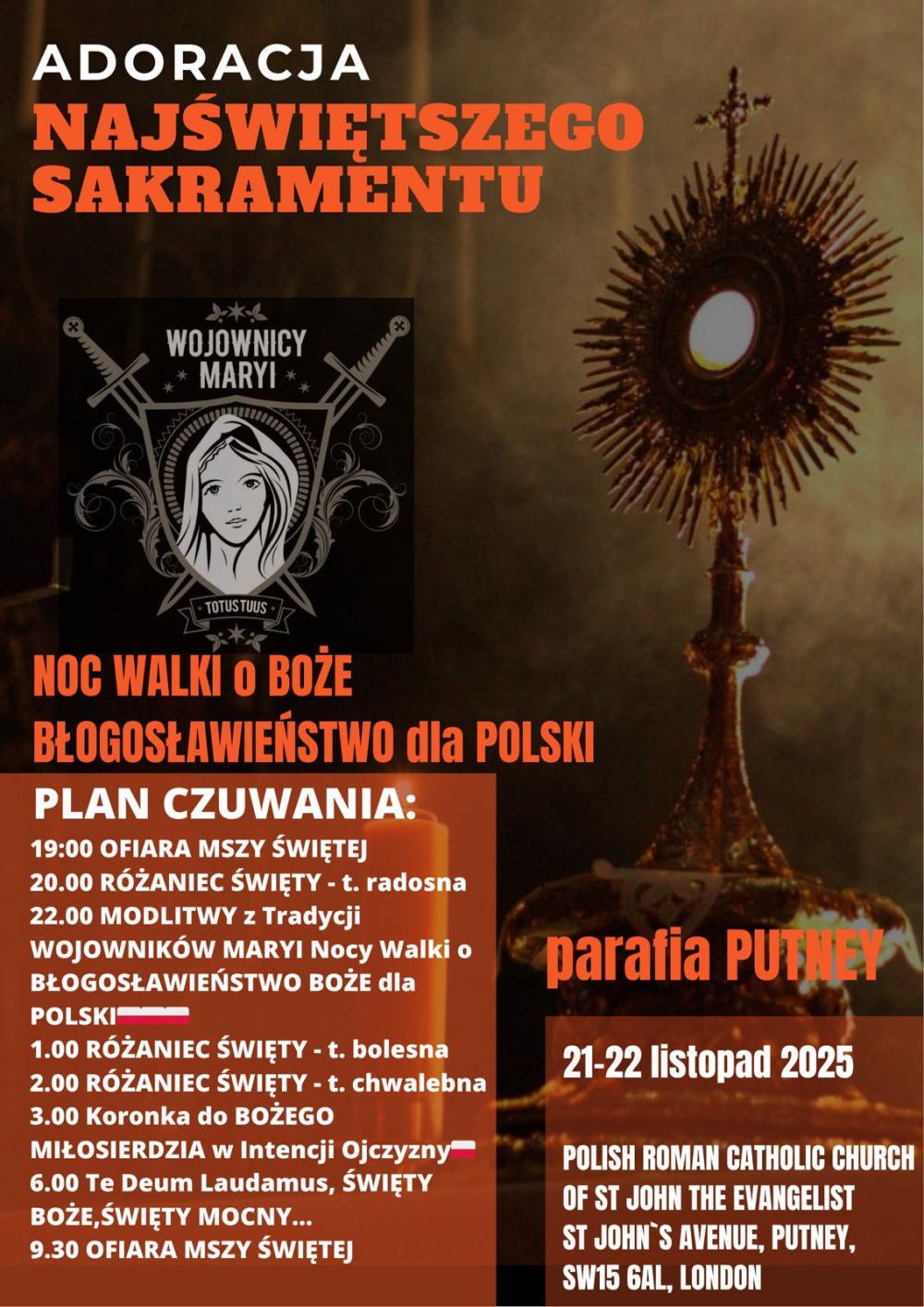 Adoracja Najświętszego Sakramentu. Noc walki o Boże błogosławieństwo dla Polski