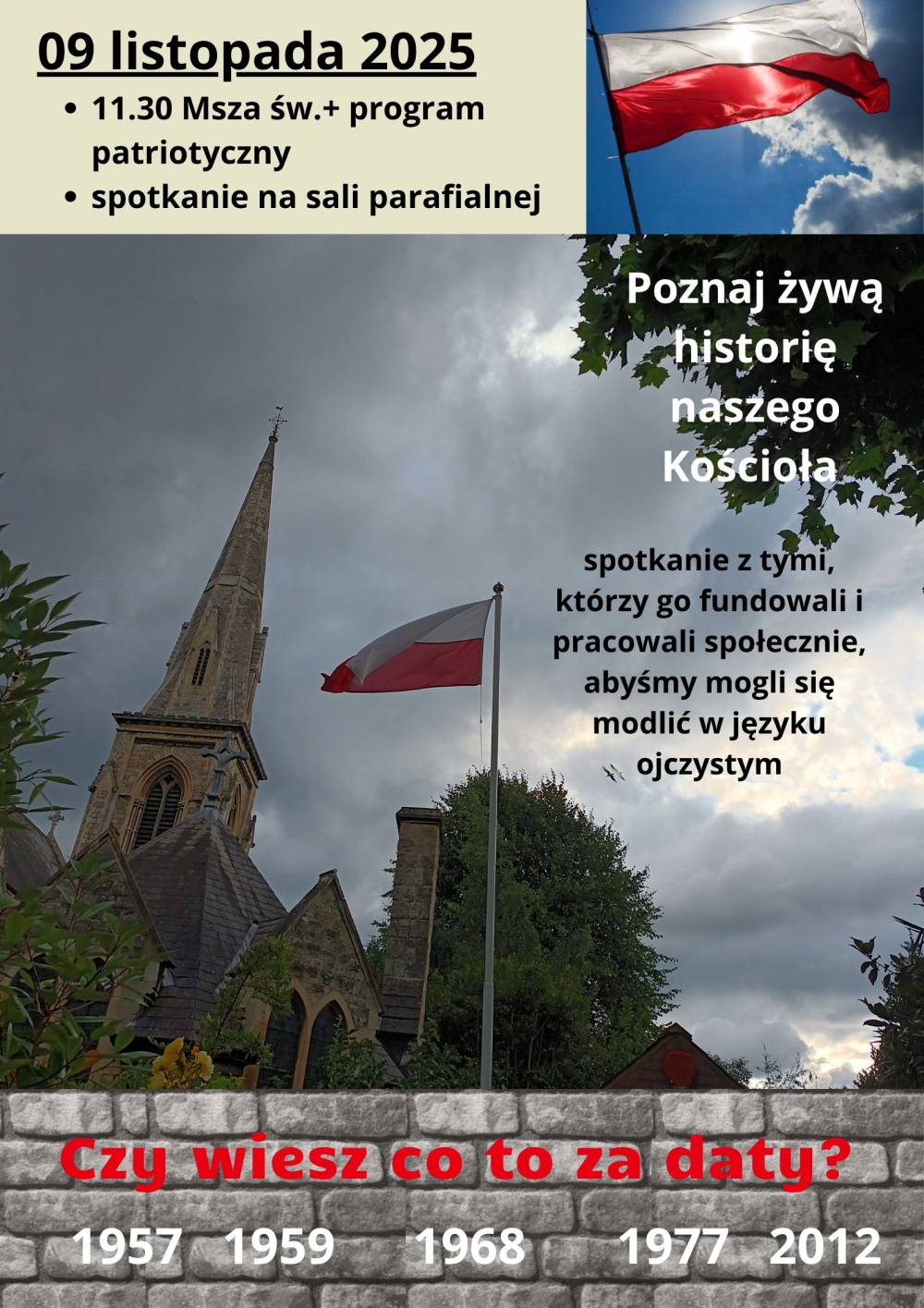 Zapraszamy, aby zarezerwować niedzielę na wydarzenia patriotyczno-historyczne- 09.11 w naszej parafii.